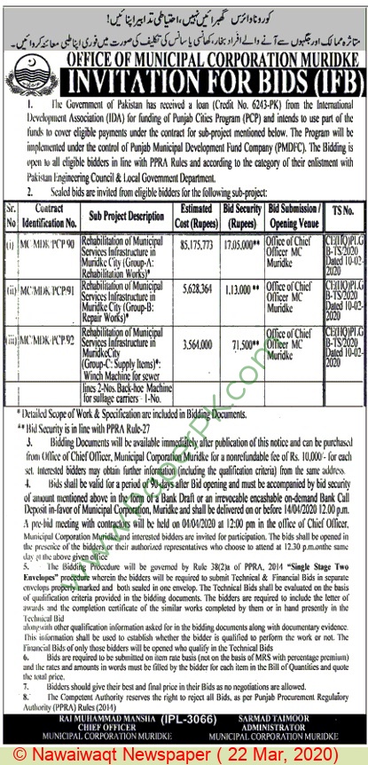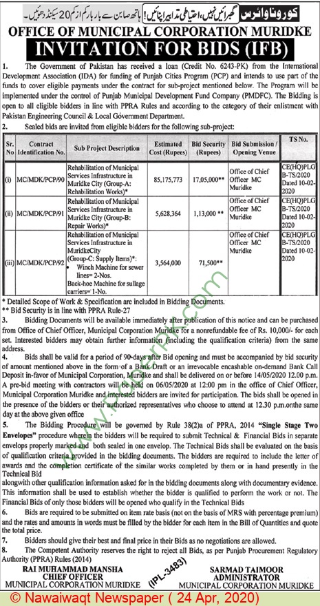 Pre qualification document for improvement of road project muridke